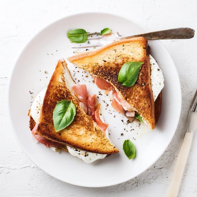 Save Last Tuesday, I stood in my kitchen at midnight, too tired to cook anything elaborate but craving something that felt special. I had half a burrata ball from a dinner party earlier that week and some prosciutto languishing in the back of my fridge. Five minutes later, I was watching golden bread turn crisp in my skillet, wondering why I'd never thought to put these ingredients together before.