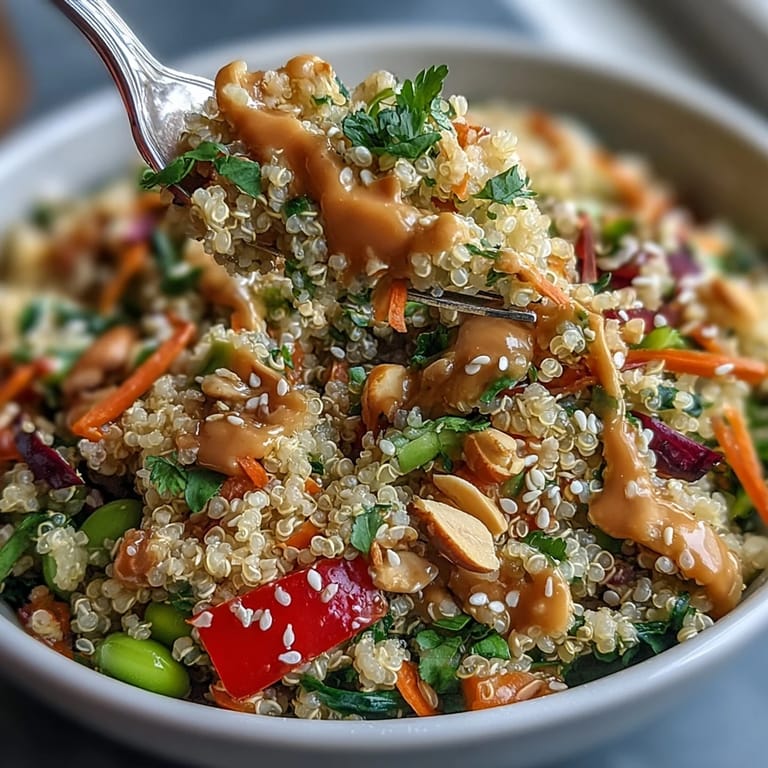 Save There's something about the smell of coconut milk simmering with quinoa that stops me mid-afternoon, like a small permission to slow down. I discovered this bowl on a day when my fridge was overflowing with vegetables I'd bought with too much optimism, and I needed something that felt both light and substantial. The first time I tasted it, the creamy grain underneath the crisp vegetables and that peanut dressing made me realize I'd been overthinking healthy bowls the whole time.